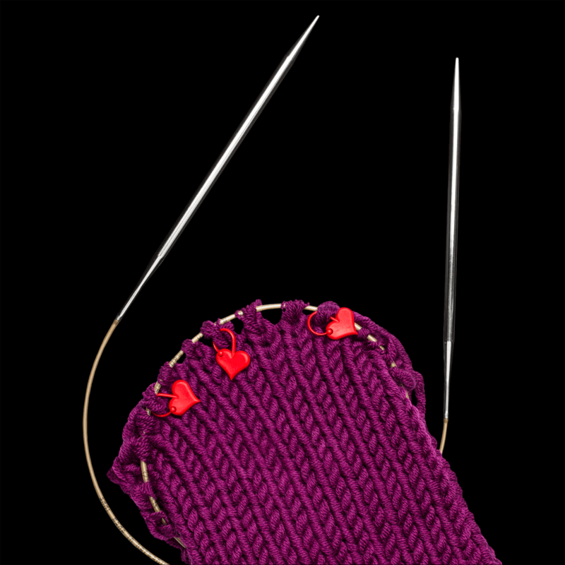addiLove Maschenmarkierer – Die kleinen Herzen sind vielseitig verwendbar. Gerade bei sehr filigranen Projekten zur Kennzeichnung von Reihen und Musterstrick. Geeignet für Nadelstärke bis 6 mm.