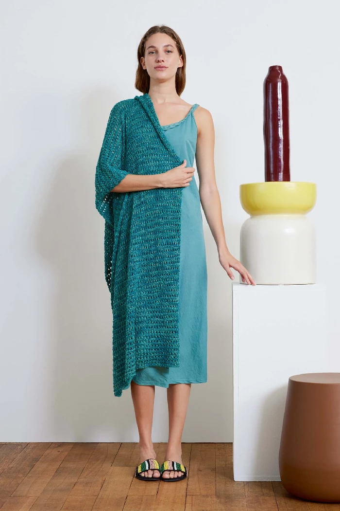 Die Strickanleitung für dieses Damen-Schultertuch ist für die Fertigung aus Siempre (Pima-Baumwolle und Cupro) von LANG YARNS vorgesehen.