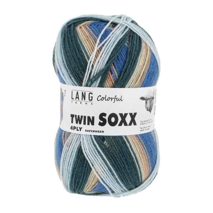 Mit Twin Soxx erhalten Sie zwei identische Farbverläufe auf einem Knäuel – ideal für perfekt passende Zwillingssocken. Beginnen Sie die erste Socke mit dem Faden aus dem Inneren des Knäuels. Nach etwa 200 m stoßen Sie auf ein kurzes unbedrucktes Stück Garn, das Sie einfach abschneiden. Direkt danach startet der gleiche Farbverlauf für die zweite Socke – für harmonische, aufeinander abgestimmte Strickstücke.